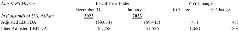 This press release references certain non-IFRS measures used by management. These measures are not recognized under International Financial Reporting Standards (“IFRS”), do not have a standardized meaning prescribed by IFRS, and are therefore unlikely to be comparable to similar measures presented by other companies. Rather, these measures are provided as additional information to complement those IFRS measures by providing further understanding of the Company’s results of operations from management’s perspective. Accordingly, these measures should not be considered in isolation nor as a substitute for analysis of the Company’s financial information reported under IFRS. The non-IFRS measures referred to in this press release are “Adjusted EBITDA” and “Fleet Adjusted EBITDA”.